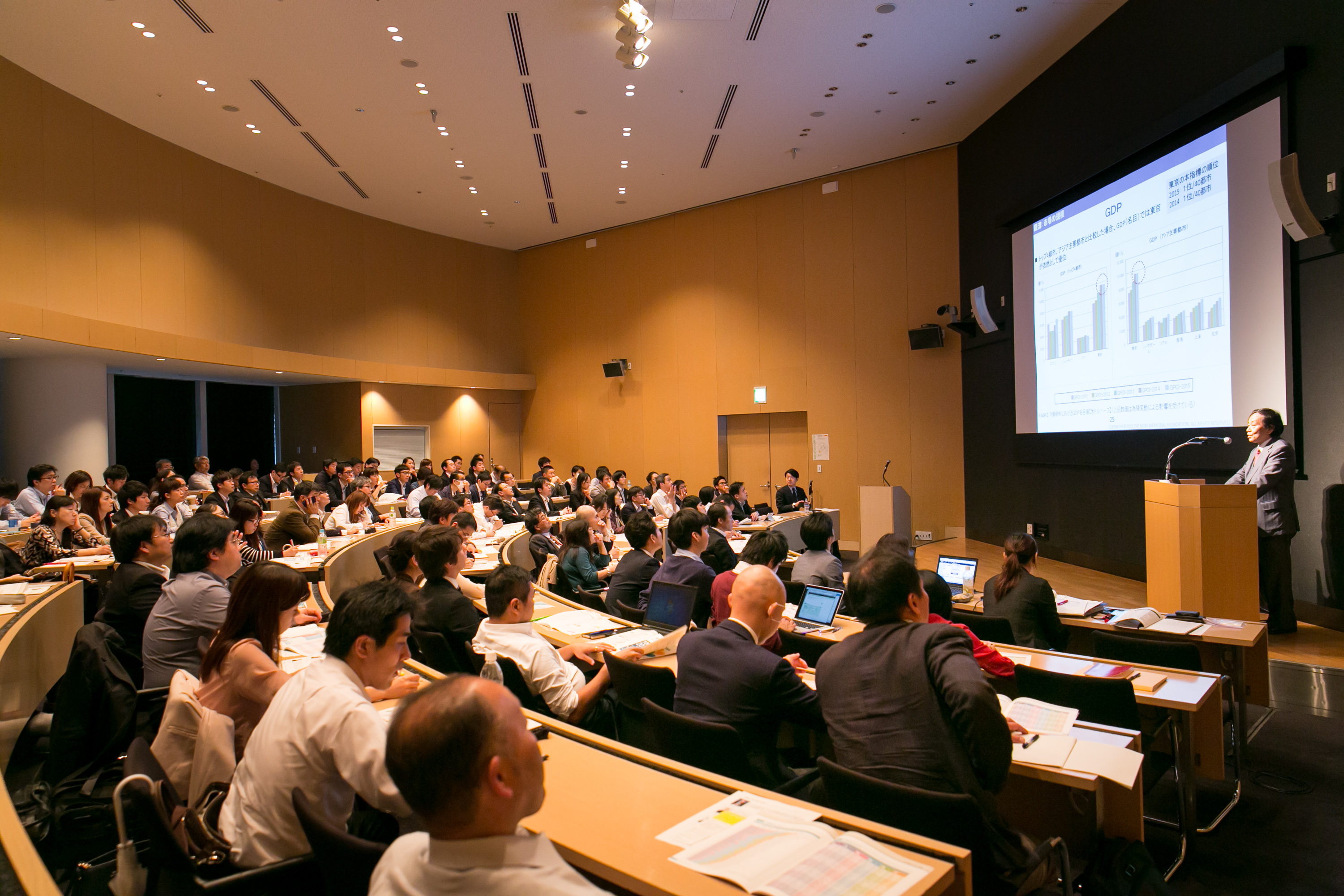 - 2015年10月16日(金)に、「世界の都市総合力ランキング GPCI-2015 セミナー」を六本木アカデミーヒルズで開催しました。当日は、本ランキングのワーキング・グループ主査である、市川宏雄明治大学専門職大学院長からのGPCI-2015の結果報告とその解説を行い、約150人の方に出席いただきました。
